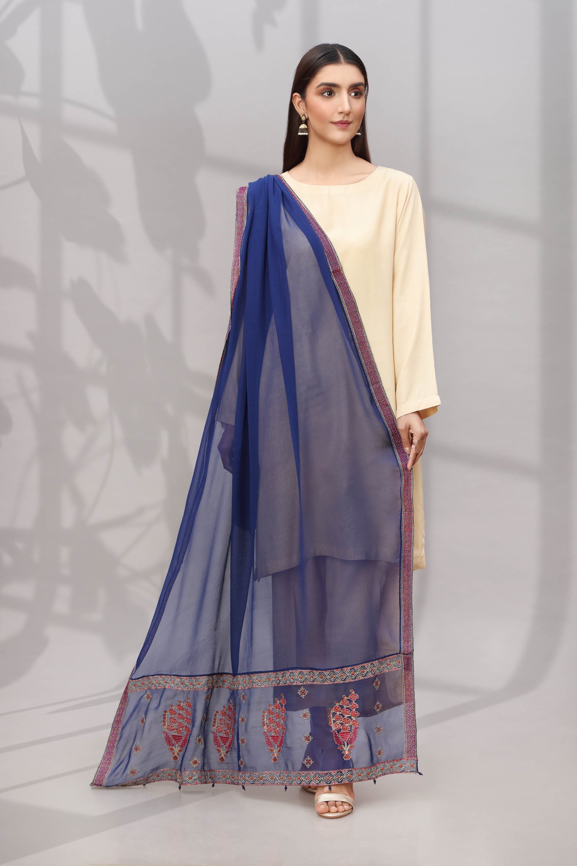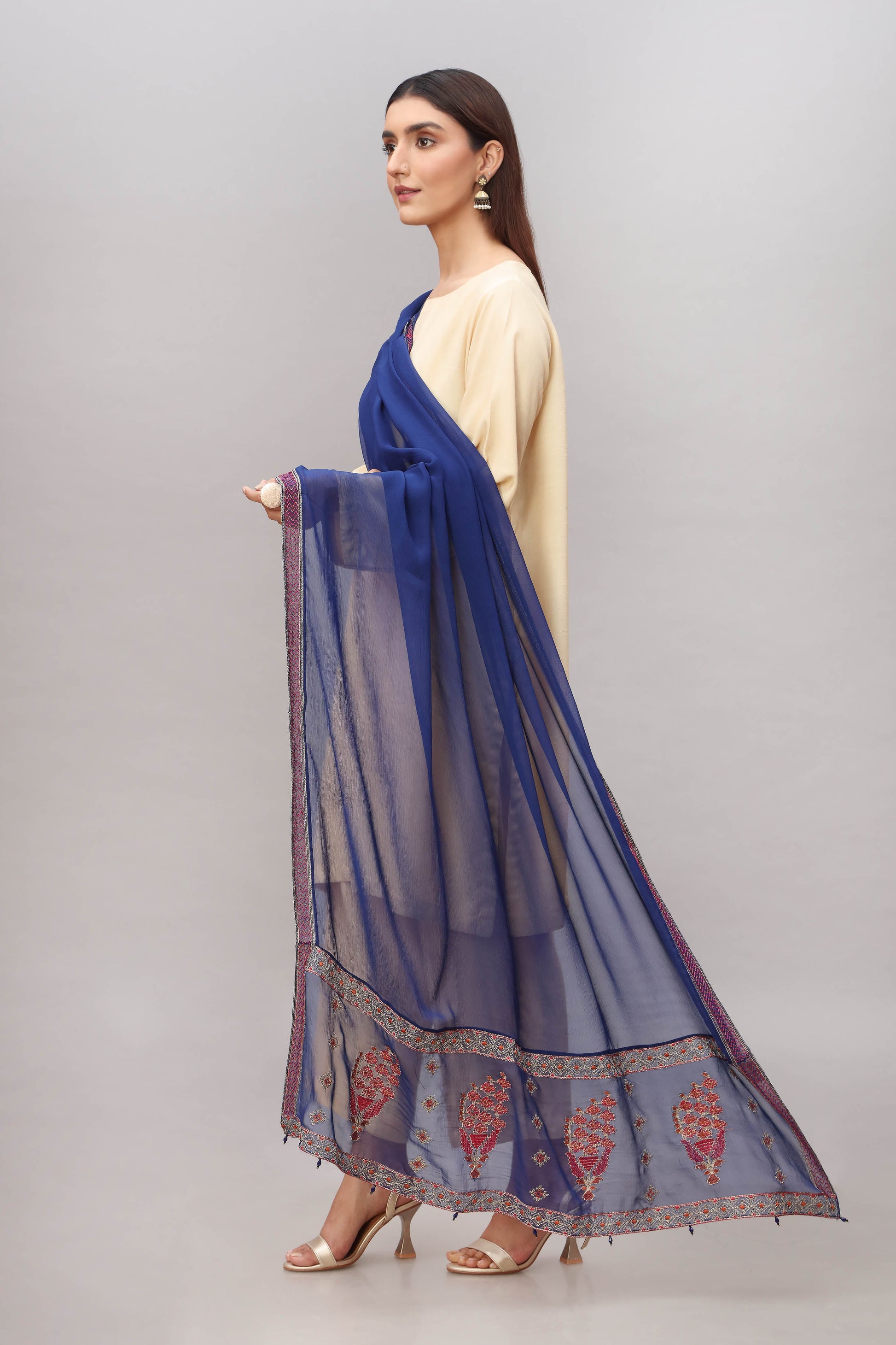 Deep Contrast Colour Patti Dupatta Separate Detailed With Cross Stitch Motif.