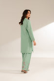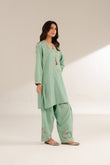 Nake a statement with our two-piece suit embroidered light green ensemble featuring a lawn karandi embroidered shirt paired with embroidered shalwar.