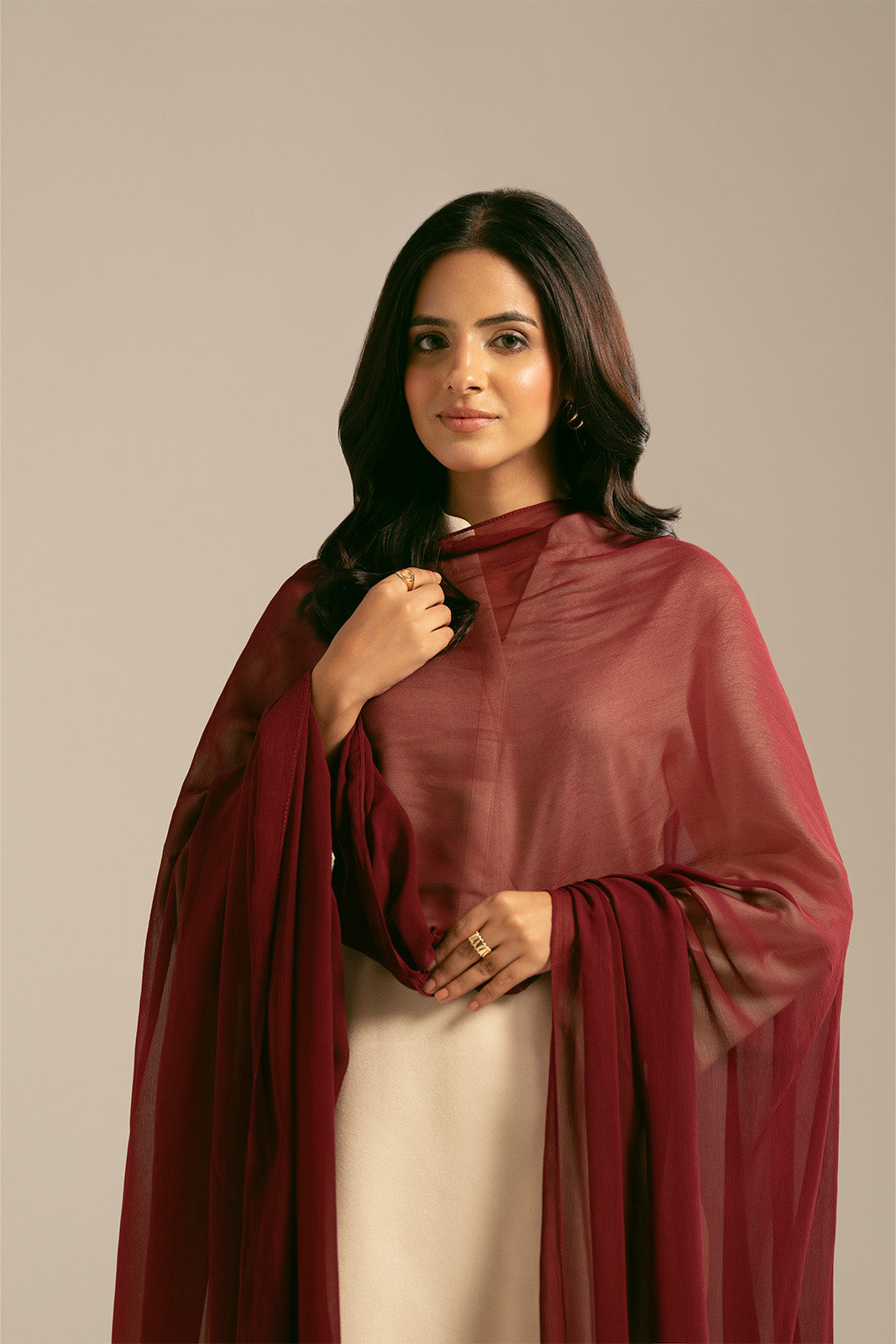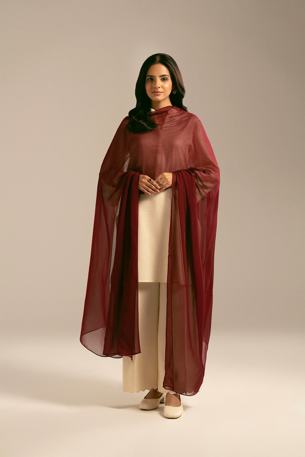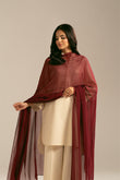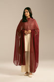 This maroon chiffon dupatta is made of soft lightweight fabric, with tassels on the edge for a graceful look.