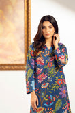 Blue cambric floral printed two piece unstitched suit.