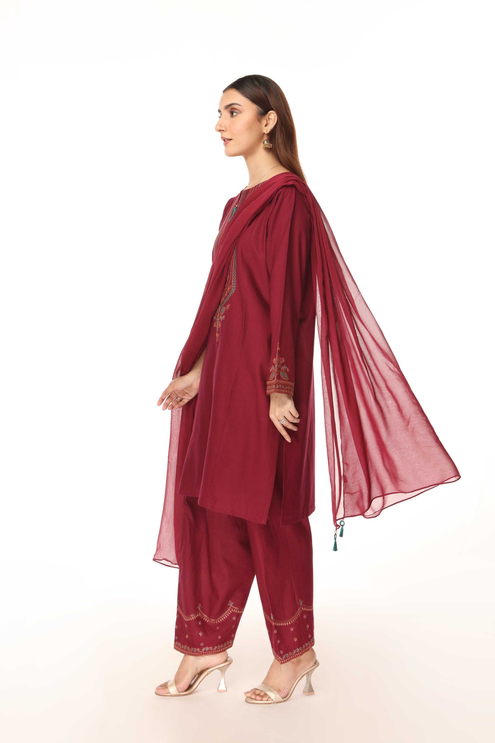 3 Piece Slub Khaddar Embroidered Suit (BA0064)