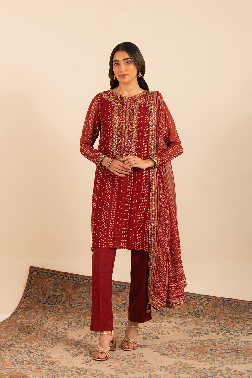 3 Piece Printed Chiffon Embroidered Suit (FL0004)