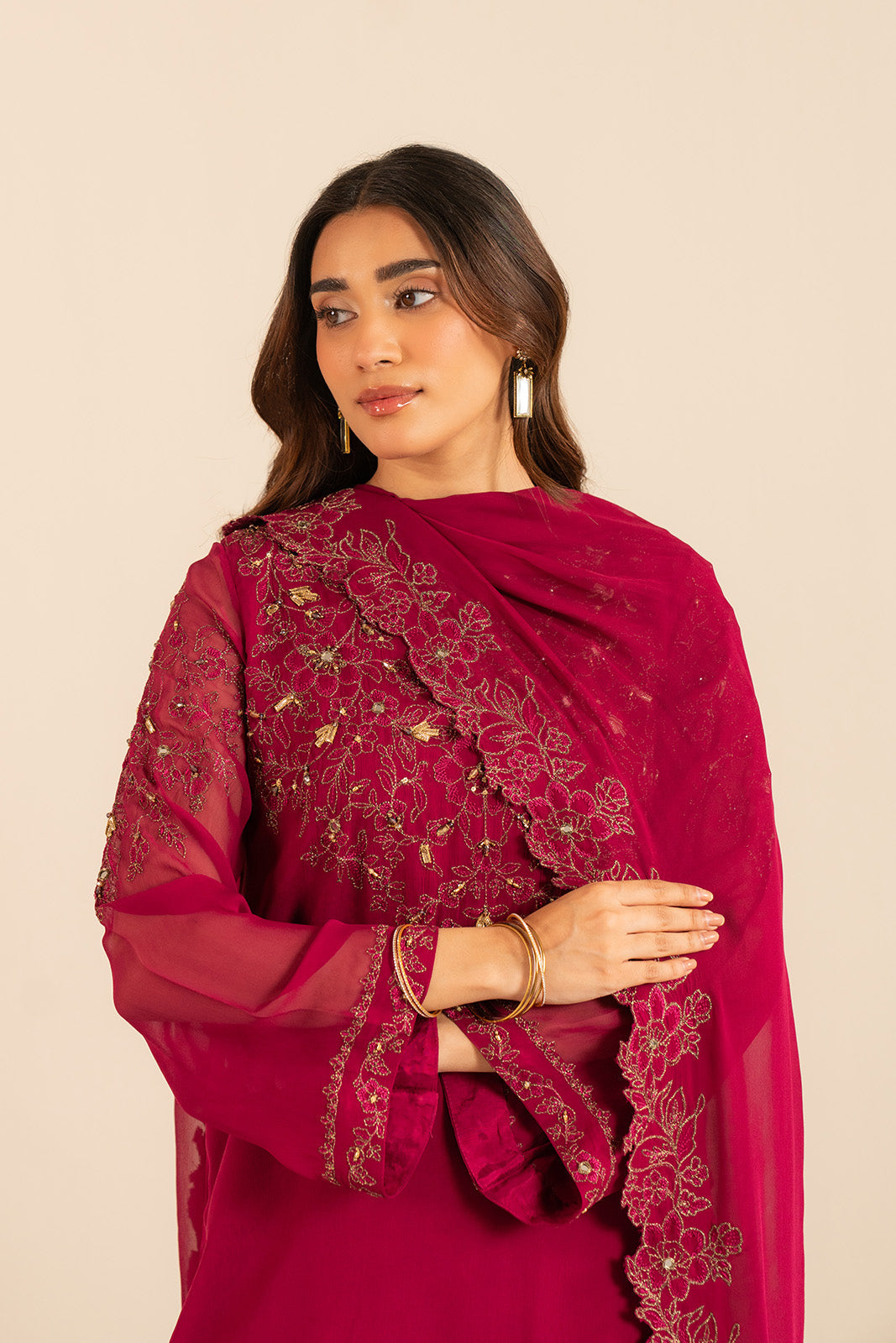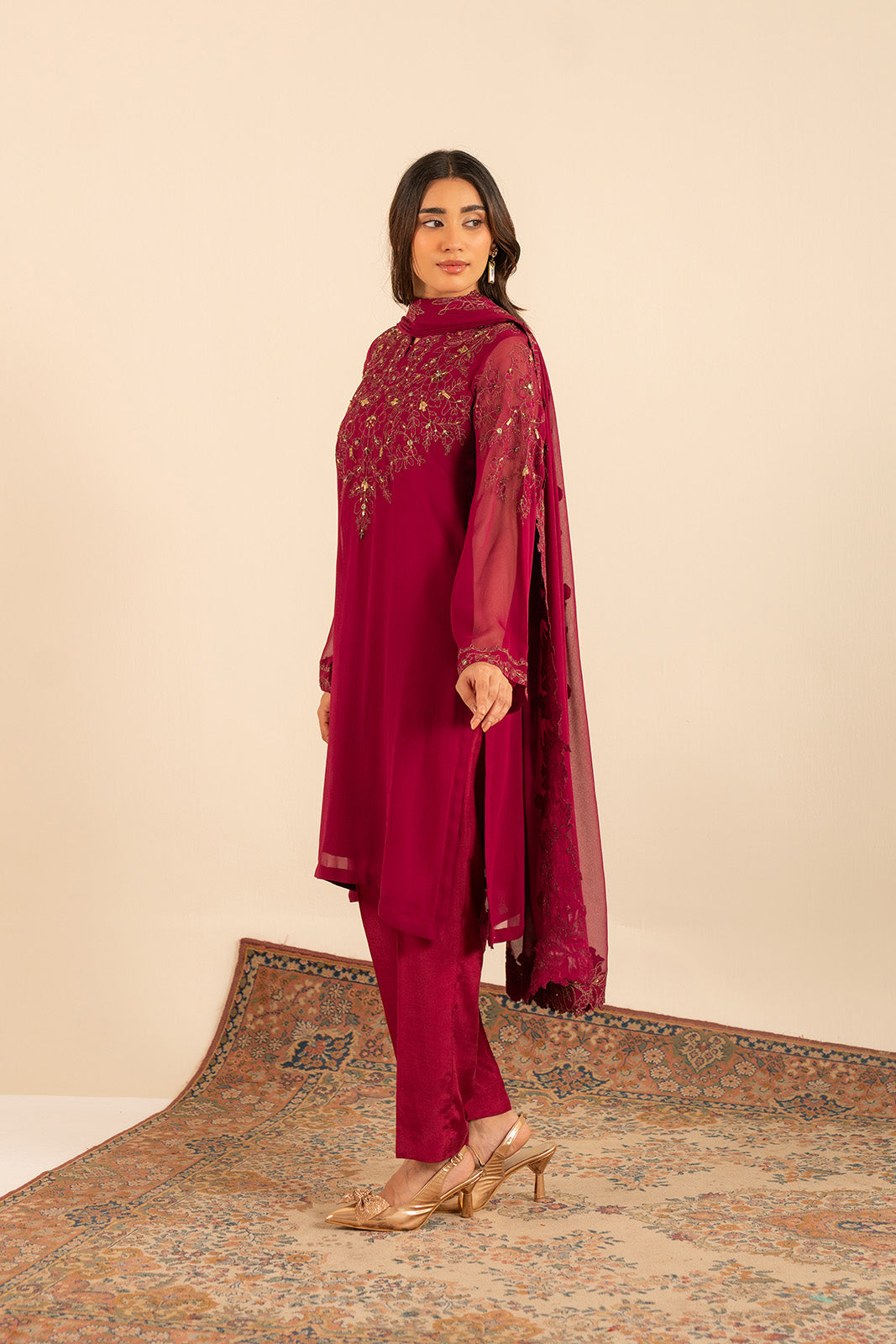 3 Piece Chiffon Embroidered Suit (FL0010)
