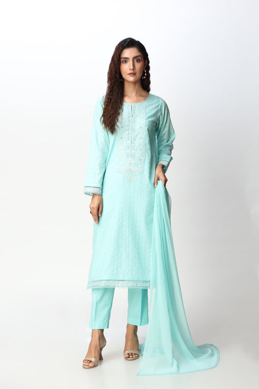 DetailsFabric: LawnPieces: 3Pcs (Shirt - Pant - Dupatta)Color: Aqua