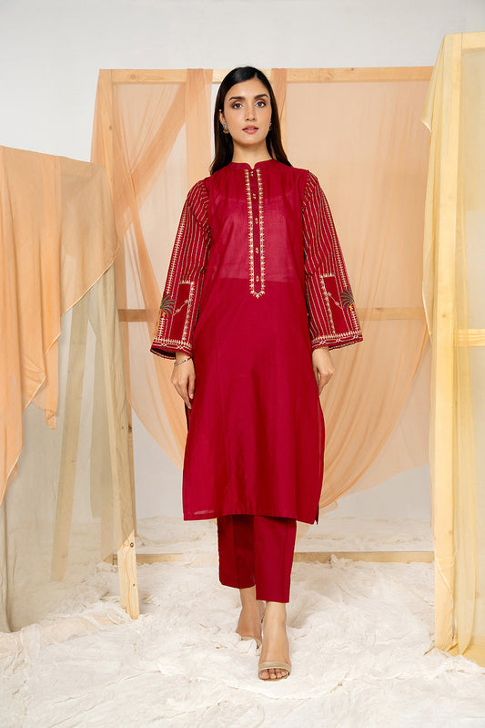 DetailsFabric: LawnPieces: 2Pcs (Shirt - Cigarette Pant)Color: Maroon