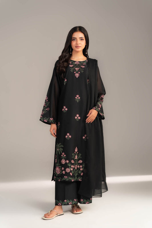 DetailsArticle Name: BLACK FOREST IColor: BlackFabric: LawnPieces: 3 Piece Suit3 Piece stitched embroidered, embroidered neckline...