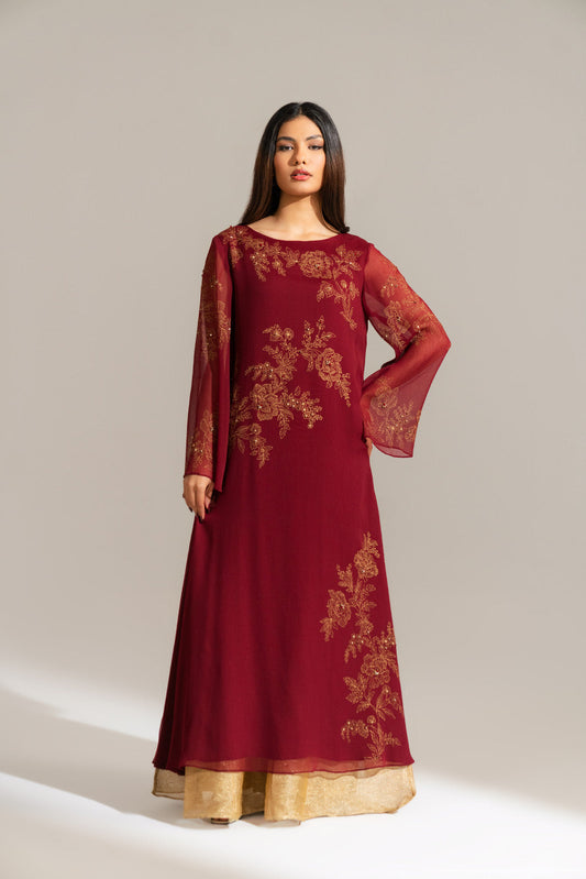 DetailsArticle Name: FIRE WORKColor: MaroonFabric: Printed ChiffonPieces: 1 Piece ShirtRich flowy chiffon floor length outfit...