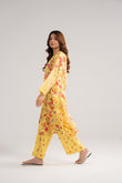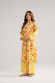 Floral print a yellow base shirt with embroidered sleeves paired with printed culottes.