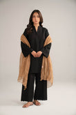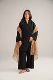 Dull gold tissue crushed dupatta with gotta jhuli tassels.