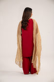 Our crushed antique tissue dupatta with hand crafted tassels on paloo.