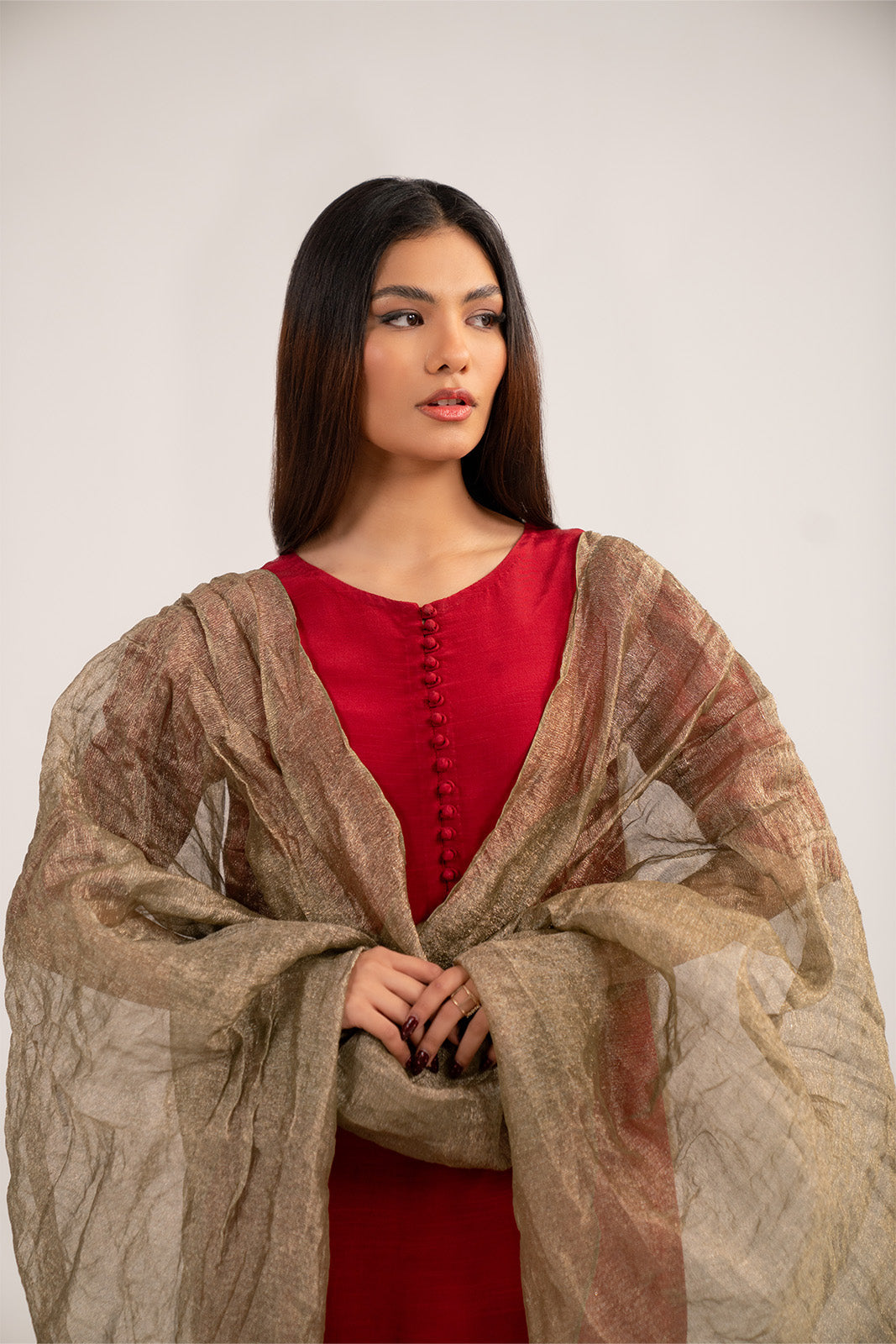 1 Piece Tissue Zari Solid Dupattas/Stoles (FD0086)