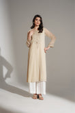 An ivory embroidered shirt adorned with delicate mirror work, adding a perfect touch of bling, keeping to look elegance.