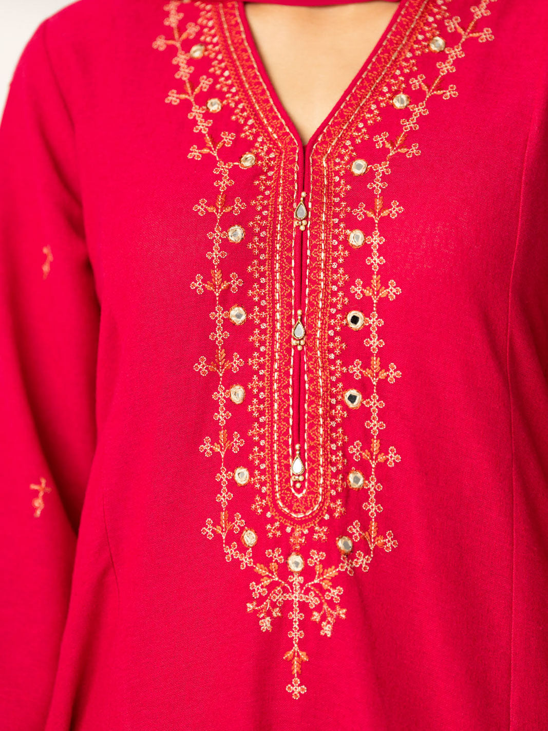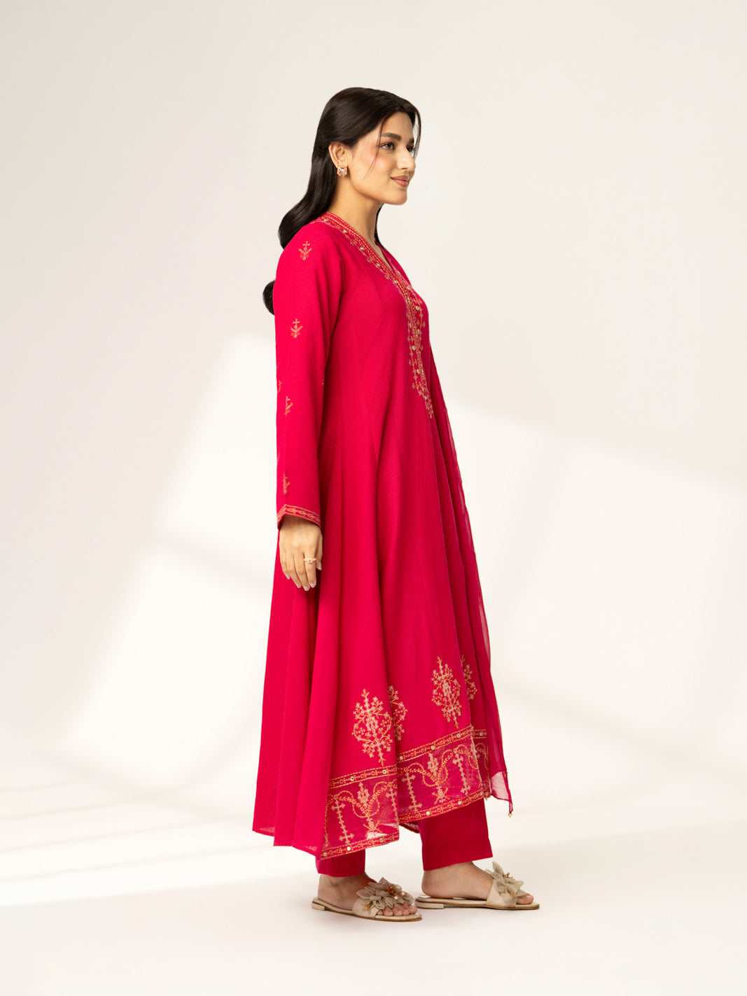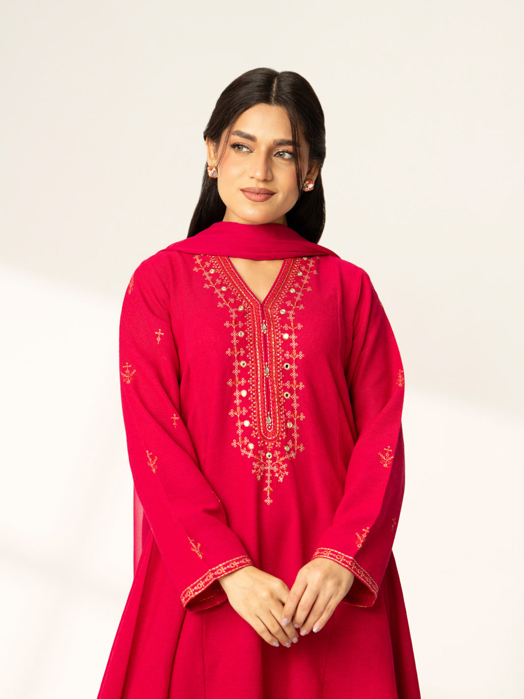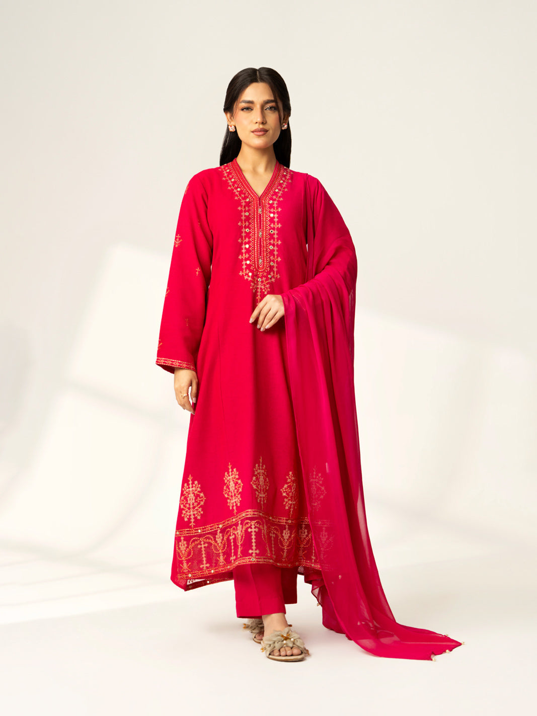 3 Piece Shockingpink Embroidered Suit (BA0133)