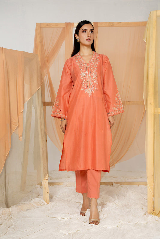 DetailsFabric: LawnPieces: 2Pcs (Shirt - Cigarette Pant)Color: Orange