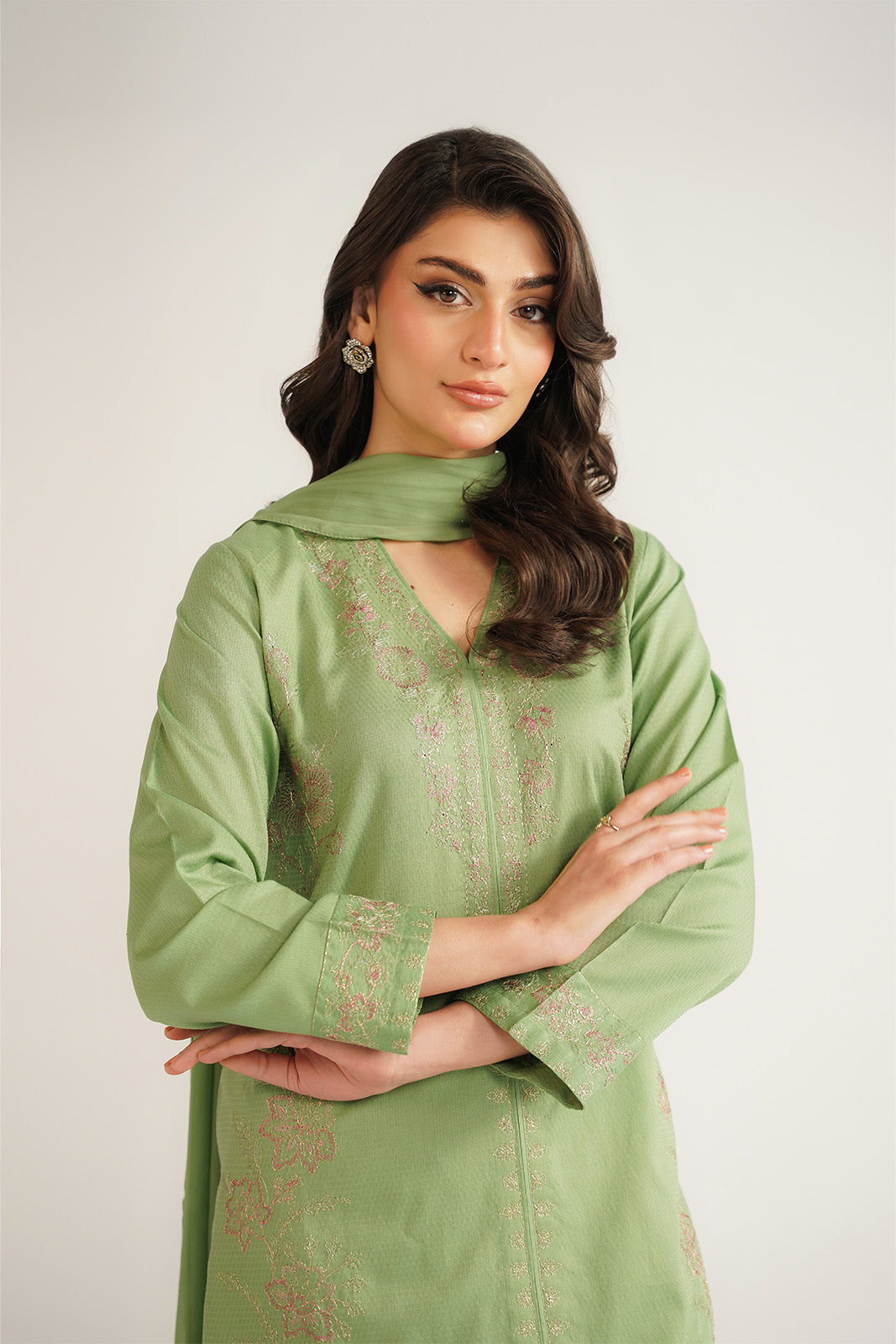 3 Piece Cotton Jacquard Embroidered Suit (CS0485)