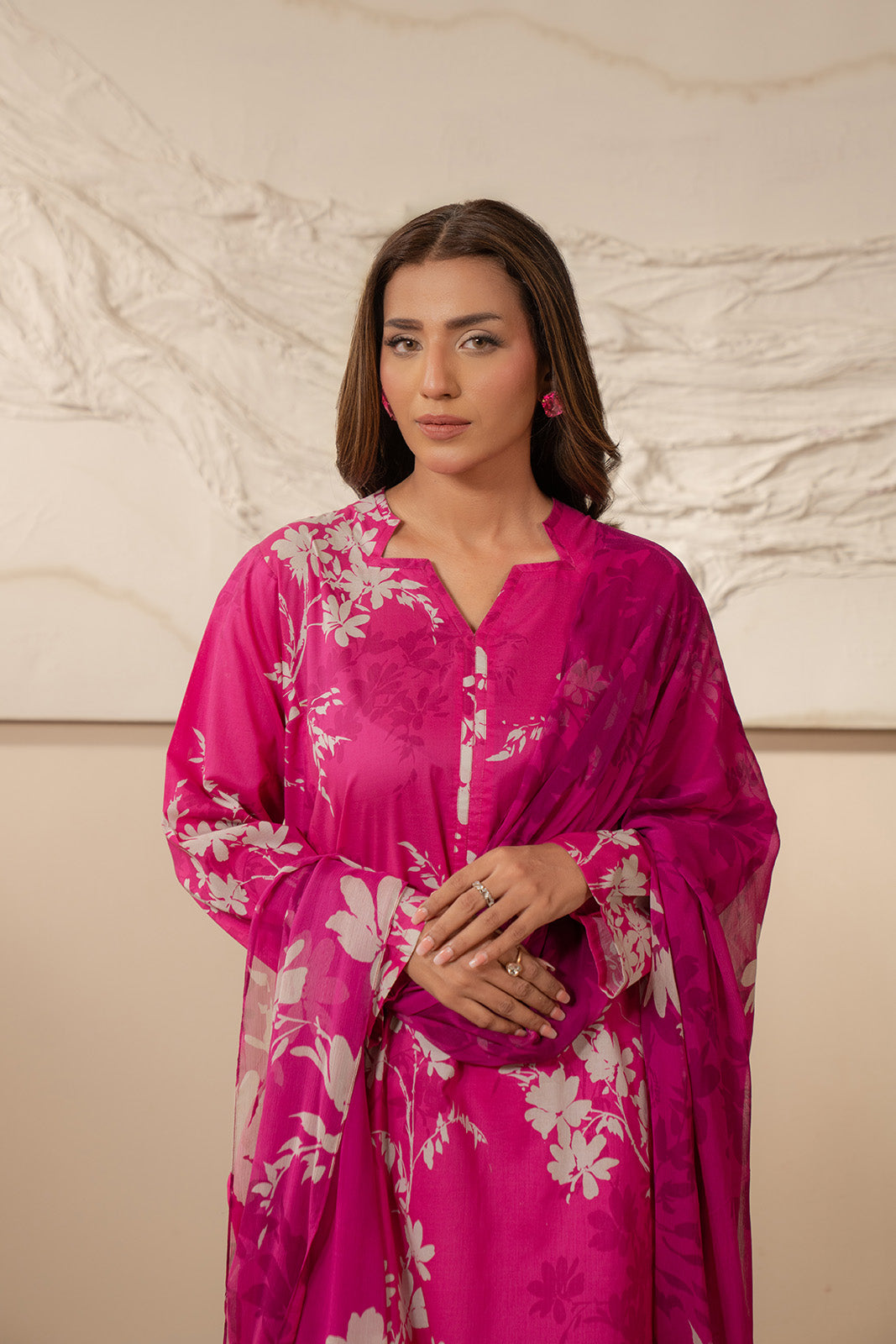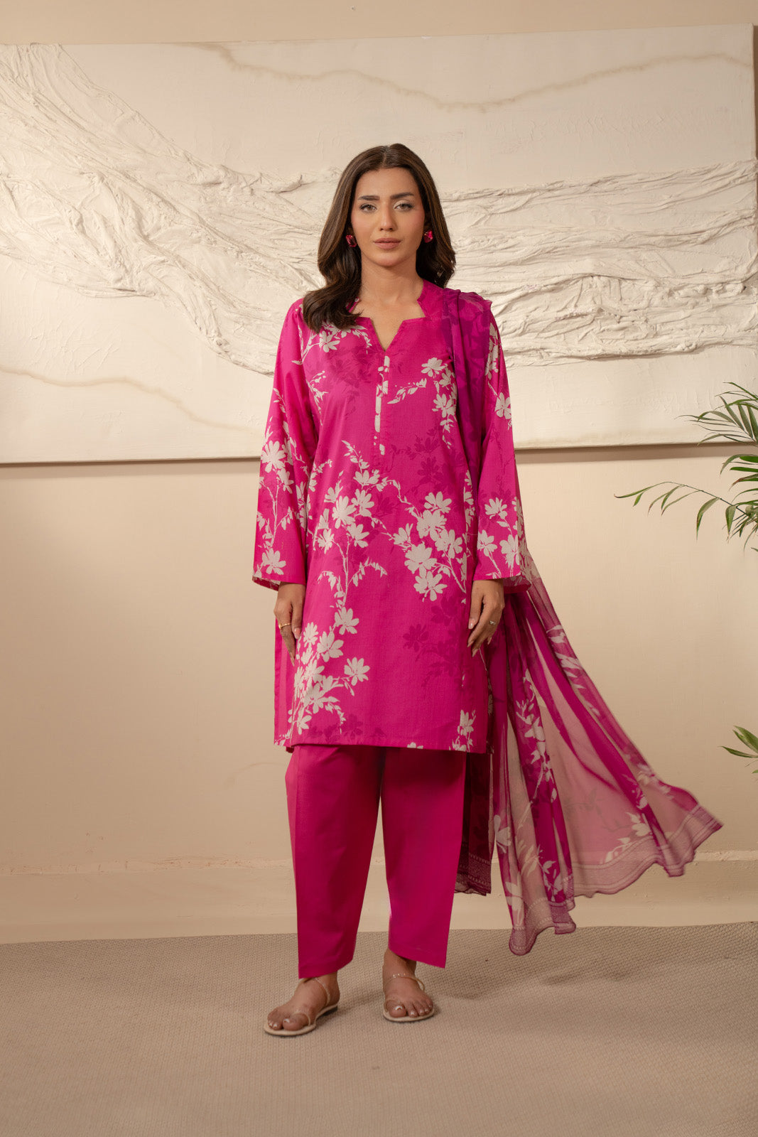 3-Piece Unstitched suit with bold floral print.